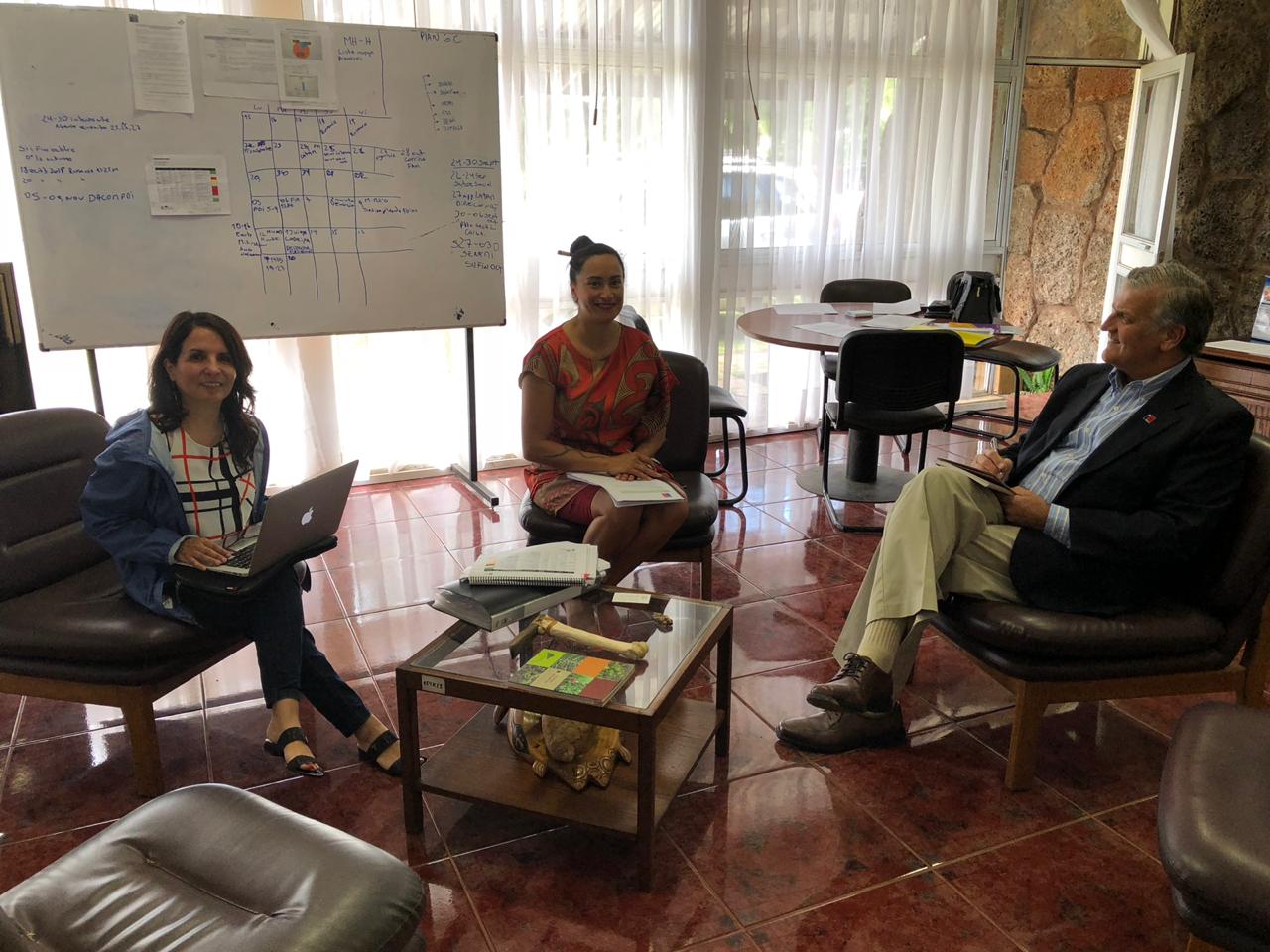 En la ocasión, además se reunió con la gobernadora de la isla, Tarita Alarcón Rapu y el alcalde de la Municipalidad de Rapa Nui, Pedro Edmunds Paoa, con quienes comentaron el rol de la innovación, para abordar los desafíos de la isla y seguir potenciando los sectores importantes, como la apicultura, frutales y otros.