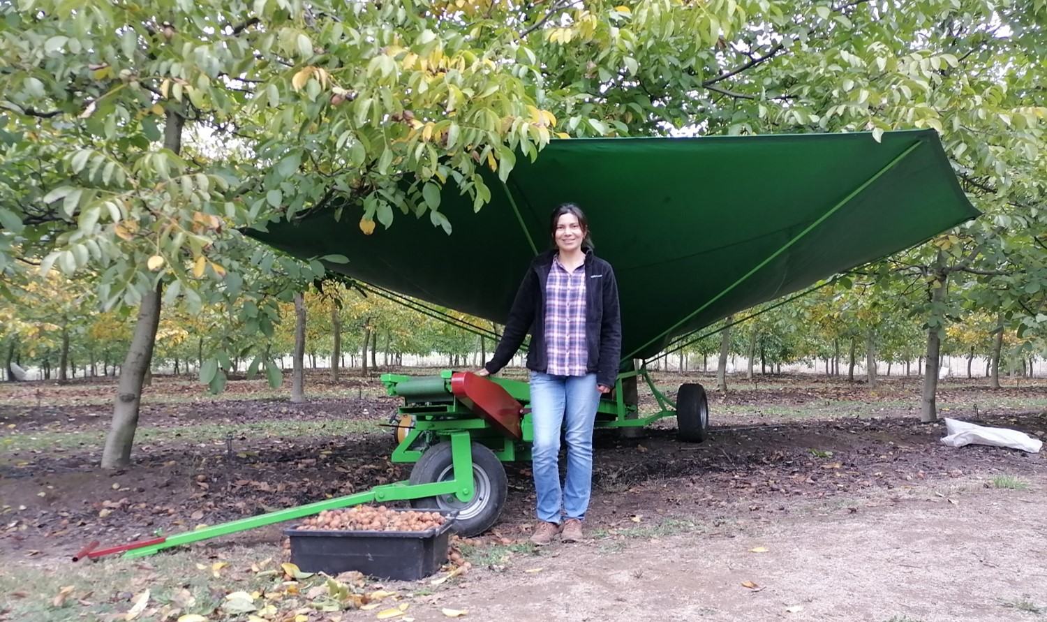 “Tras un largo proceso esta joven productora pudo materializar la idea de su máquina ´Capturador´. Se trata de un equipo de tracción manual, dirigido a pequeños productores de nueces. Cumple la función de capturar o recoger las nueces al momento que son remecidas en el período de cosecha, que dicho sea de paso, Chile ha tenido un aumento considerable en los últimos años por su tamaño y calidad externa e interna, de acuerdo a estándares internacionales”, comentó el director ejecutivo de FIA, Álvaro Eyzaguirre.