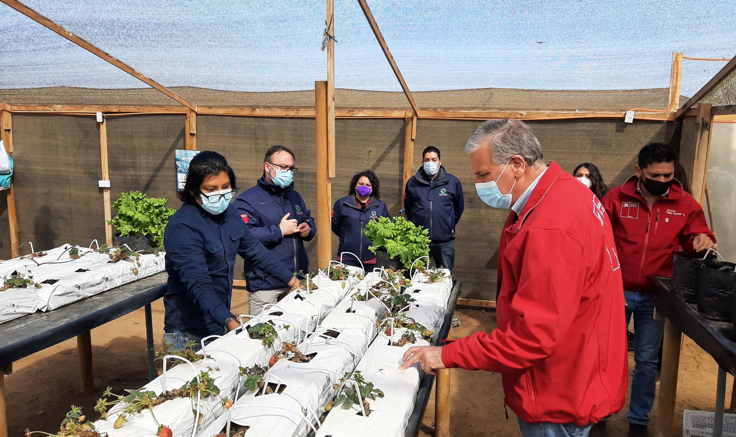 En Alto La Portada, y junto al seremi de agricultura, Pablo Castillo; se reunió con Fernando Salinas, joven innovador que desarrolló un cultivo hidropónico de frutillas que permitió optimizar hasta el 50% de agua en su producción.